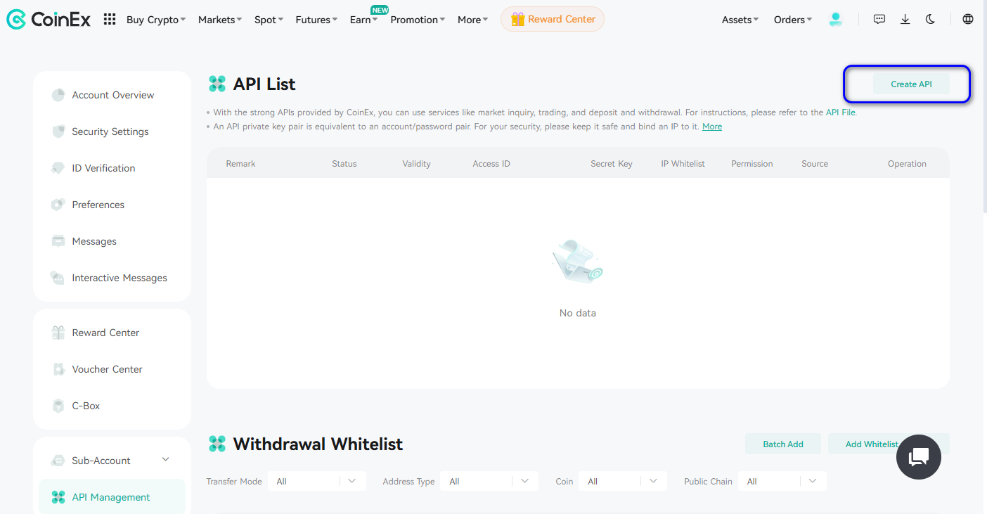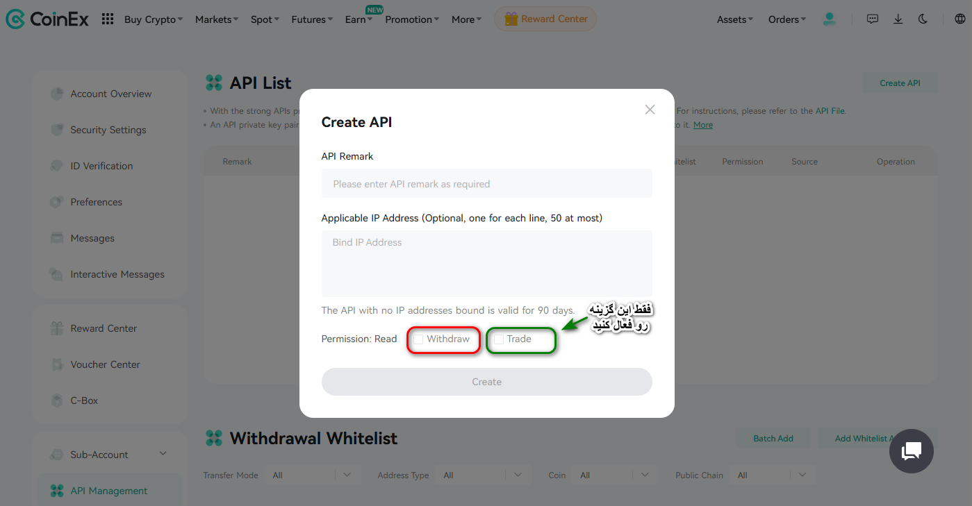 5. ساخت API در CoinEx هیچ محدودیت خاصی ندارد